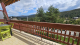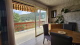Exposé sud, sud-ouest, grand appartement 2 pièces situé au premier étage d'une petite copropriété : entrée avec placards, séjour salle à manger ouvert sur une terrasse avec vue dominante sur la montagne, cuisine aménagée ouverte sur le séjour, salle de bain avec baignoire vasque et WC, 1 chambre spacieuse avec penderie.